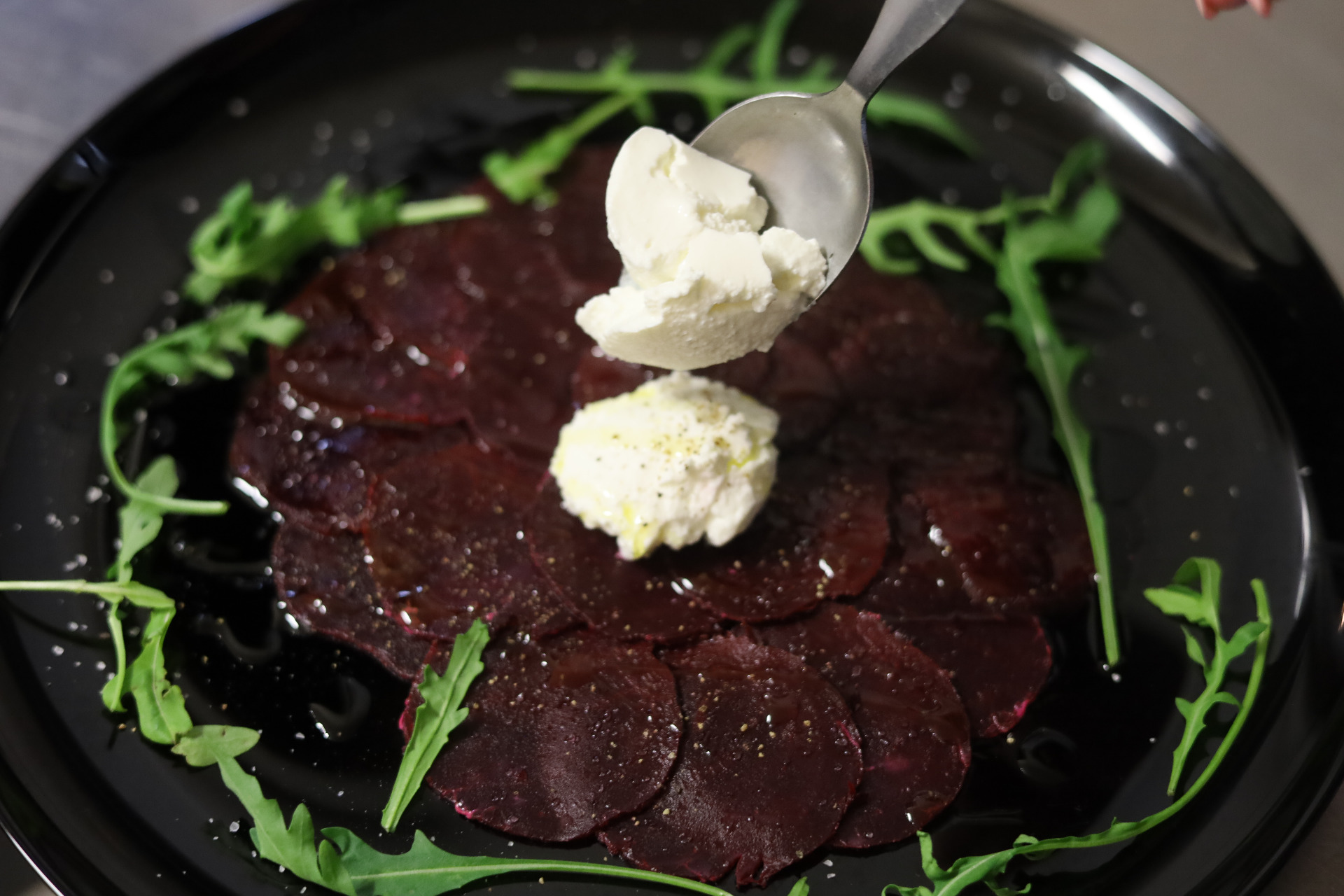 Carpaccio z červené řepy s kozím sýrem