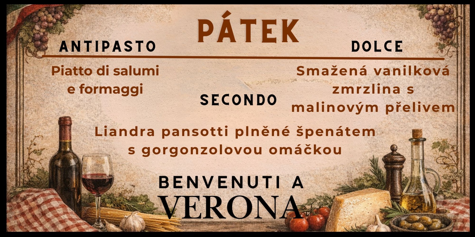 Ve středu Vám nabídneme zvýhodněné menu inspirované městem VERONA